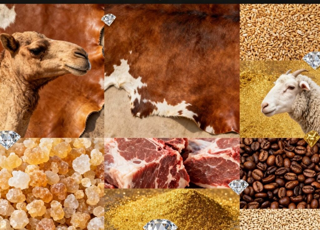 Premium Natural Frankincense and Resin, Fresh Meat, and Traditional Somali Animal Skin/Hides.